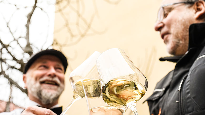 Die Zutaten für ein gelungenes Weinerlebnis: guter Wein, nette Menschen, eine tolle Umgebung.